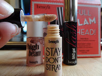 The last thing I got at sephora was the little trio sampler from benefit called FULL GLAM AHEAD! which includes their high beam highlighter, stay don’t stray primer, and bad gal lash mascara. I’ve tried both the high beam and the bad gal lash mascara and while I do like the mascara I’m not much a fan of high beam. Perhaps I haven’t used it right but I think I may have liked my elf highlighter more then this one and that might sound crazy but so far I have. However, I’m not much for highlighting as I don’t do face makeup too often but it is nice to have some. I’m sure eventually I’ll be telling everyone how much I love the product and found the perfect application method but until then it’s an OKAY product. Now I don’t particularly like the mascara formulation but I ADORE the brush applicator. I still enjoy how flexible my lashes are with my almay mascara so I suppose I am a tad bit picky want it gets right down to it. As far as the primer, I’ll keep you updated. I plan to do some testing once I’ve gotten my hands on a few more brands of eye primer.