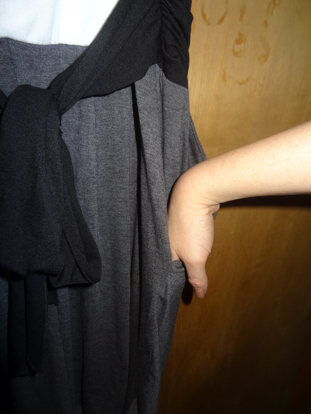 The Next Dress I will be wearing for my Graduation (Yep, under my Gown) its super comfy and cotton. It was by Speechless and for some reason I keep thinking it was $30 but it was only $20. It ties around the back and has pockets… (almost every dress I get has pockets) It’s a off white color on top, black band and tie off in the back and the bottom half is gray. Pair this with some professional looking heels and I think I’m good to go.