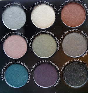 The Palette has gorgeoussssssssssssssss colors. The only one that has glitter in it, it seems is guilty gwen. When I was in Marshalls I thought they were chalky because I found three of them that were basically destroyed and looked chalky but when I found the one that I got that wasn’t touched I was pleasantly suprised at how smooth these are and I love the packaging. It’s like cardboard, ecofriendly look however it isn’t cheap feeling. I adore it. I also like that they make a point to mention which colors could be used as liners. Which could help people who are just starting out. Additionally these can all be worn wet for a more intense look though they are already pigmented, and very user friendly. <3 If you haven’t gotten your hands on these you definitively need to try it!