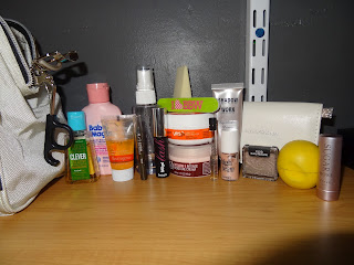 While I know this is quite similar to my Travel bag because lets face it, I only carry about 2 products in my purse on regular. (Lipstick/Gloss and eye liner) we’ll call this an updated one. I decided I would do the Blog Hop via BlogLoveTherapy. You should check out the hop. 😉
