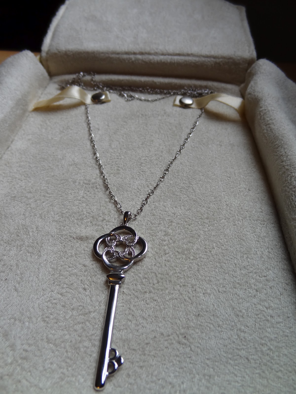 My mother bought me a graduation present, a necklace that I happened to see and said it was pretty, she went and bought it lol. I think it’s lovely. Silver with small diamond chips in it. It’s like a key. The chain is very long, about the same size as my pocket watch necklaces. It looked really good with what I was wearing!