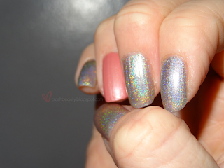 So lets call this try two with the holographic nail polish by HITS called Artemis. First off, still totally obsessed. (I used this last time over 3 weeks ago, my posts are a tad bit out of order.) Can’t wait to get a few colored holos. Old trend, new trend, I so don’t care this is like a party on my nails. The pearly pink is Sally Hansen’s Insta-dri in Mauve It which I purchased last year. Topped with Milani’s nail treatment top coat.