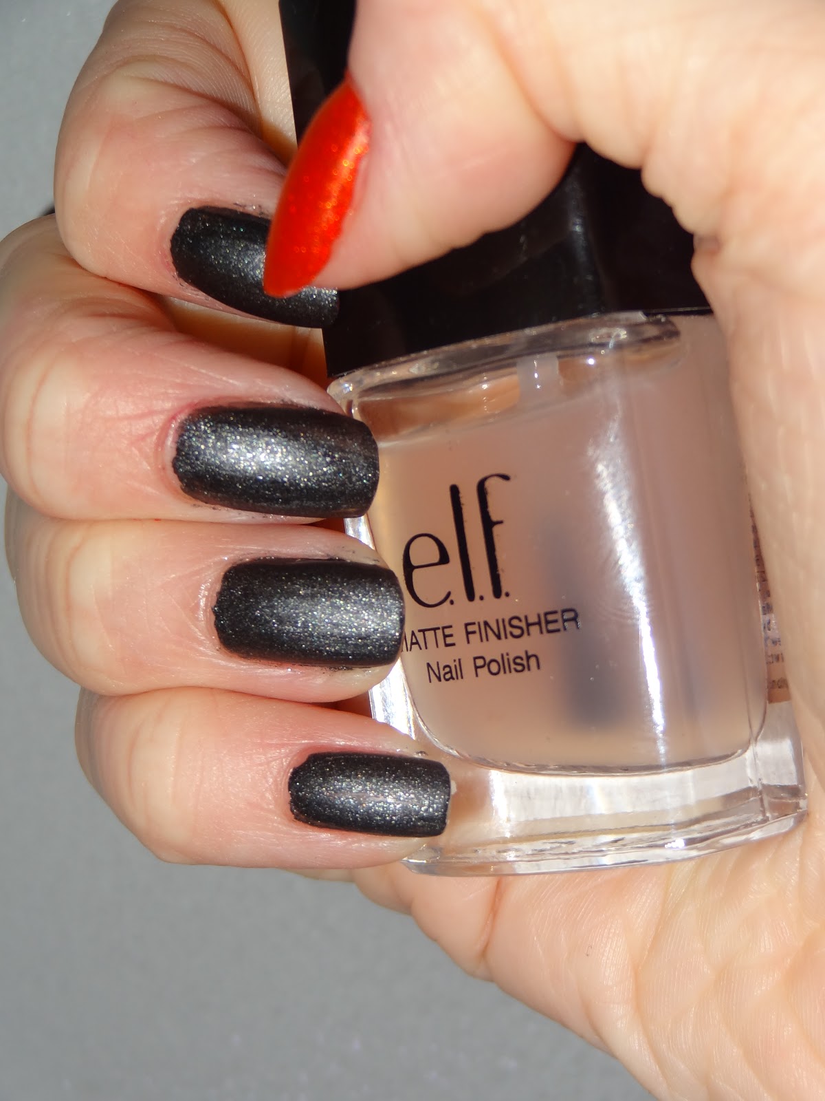 So I still have my nail polish that I won in their cardboard boxes since lets be honest, I need proper storage for my nail polishes lol there isn’t enough room! I was thinking about that China Glaze Riveting color (the bright orange jelly) but I was feeling a little…edgy? So I went with darker nails using the matte finish grey of Stone Cold (also China Glaze) on eight of my fingers and the bright Riveting on my thumbs. Topped with ELF’s Matte Finisher.