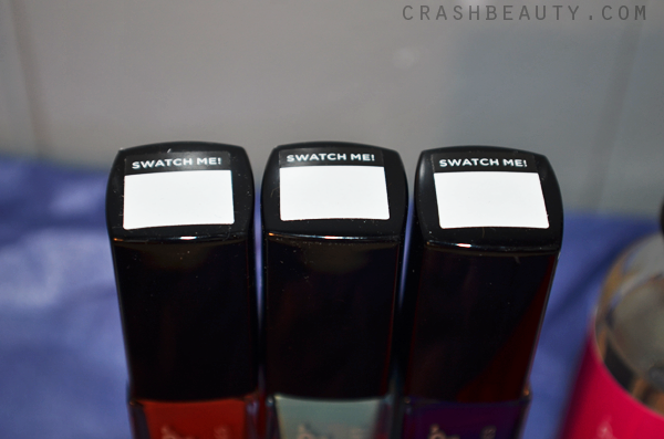 It was cute, the little salt water taffy’s were a nice touch (and delicious). The polish colors were gorgeous, opaque and perfect together, amazing nautical colors. I also love that they have the swatch me stickers on the top of each lid though I found it a little amusing since it’s on the lid with the brush. I used a q-tip to swatch them.