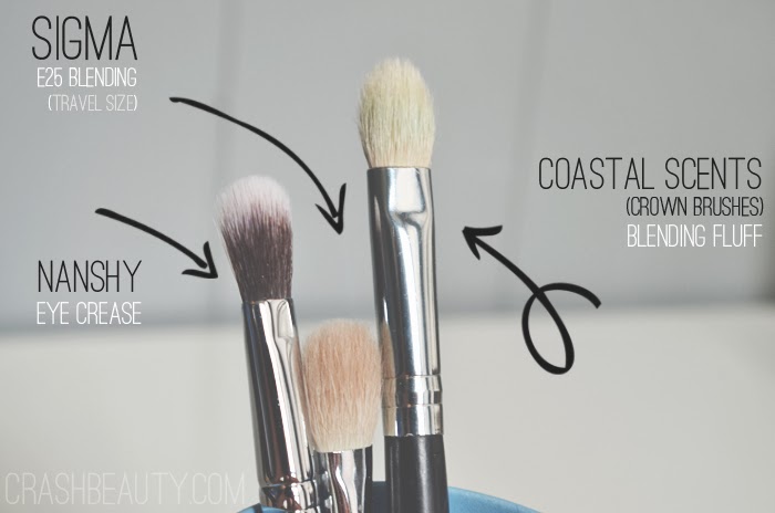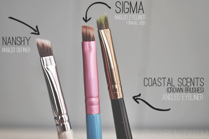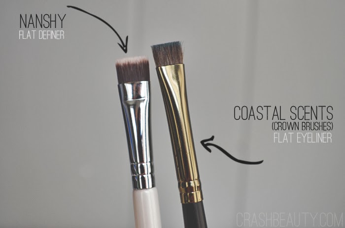 The following pictures are comparisons between Nanshy brushes and somewhat similar brushes from other companies. These brushes were photographed sitting in the containers that came with my Sigma Mrs. Bunny Collection Brushes. I also took these photos before washing my brushes so please excuse any discoloration or gunk you may see.