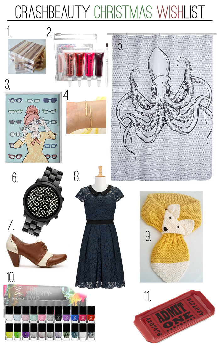 Coaster set | OCC LipTar set | Glasses Chic Illustration | Branch Bracelet | Shower Curtain | Phosphor Watch | Oxford Shoes | Eshakti Peter Pan Collar Dress | Fox Scarf | Formula X Nail Set | Movie Tray