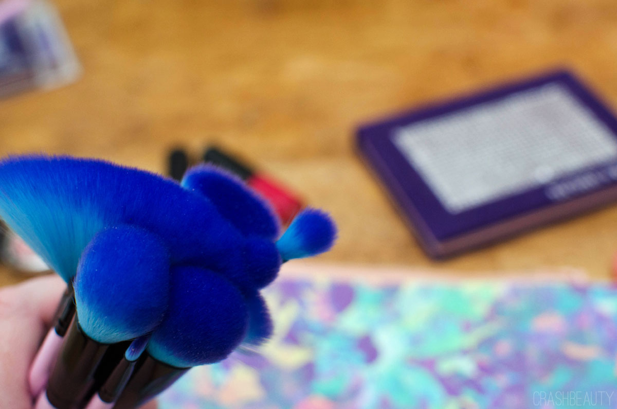 My first impression of these brushes was the insanely plastic smell that came from the plastic bag they were kept in. While the bag is very adorable (reminds me of the same kind of plastic my blow up couch was made from when I was young) I don’t think it is the best option for storing brushes. The smell took 2 weeks to completely dissipate from the brushes. However after just a few hours the really strong smell was significantly reduced.